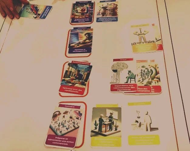 La personnalisation de chaque Fresque s’opère sur trois niveaux : le niveau de maturité des participants vis-à-vis de l’IA générative, leur métier et les spécificités de l’organisation (structure, culture, secteur d’activité, etc.).